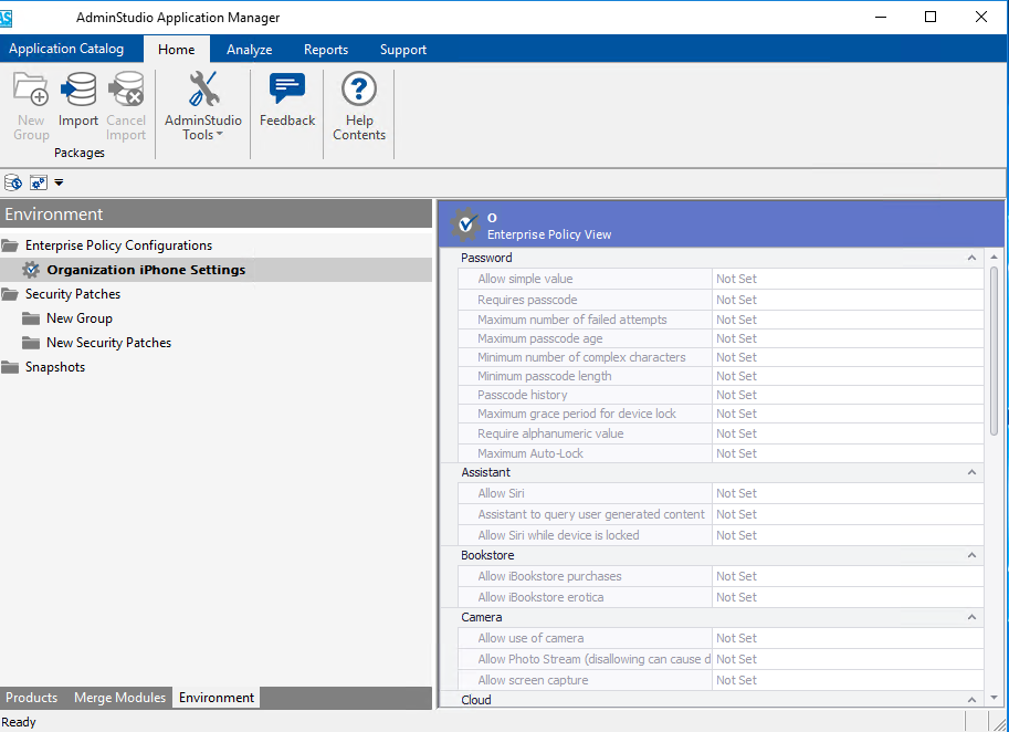 When you click on an Enterprise Policy in the Application Manager Environment View, the properties of the Enterprise Policy appear in the right pane of the user interface.