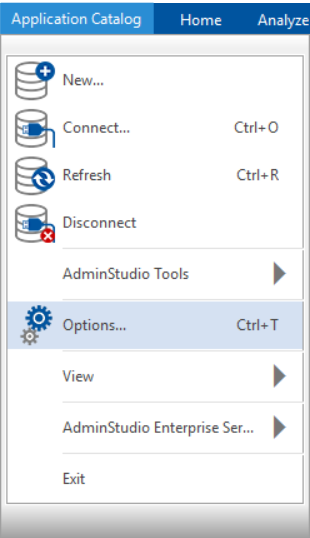 In the Application Catalog tab, select Options. The Options dialog box opens.