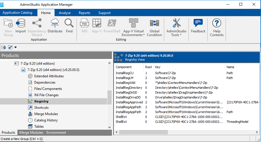 - In the tree, expand an App-V package and select the Registry node. The App-V Registry View opens.