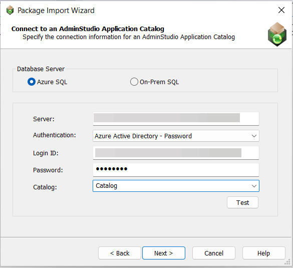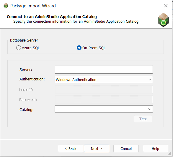 6. Select AdminStudio Application Catalog and click Next. The Connect to an AdminStudio Application Catalog panel opens.